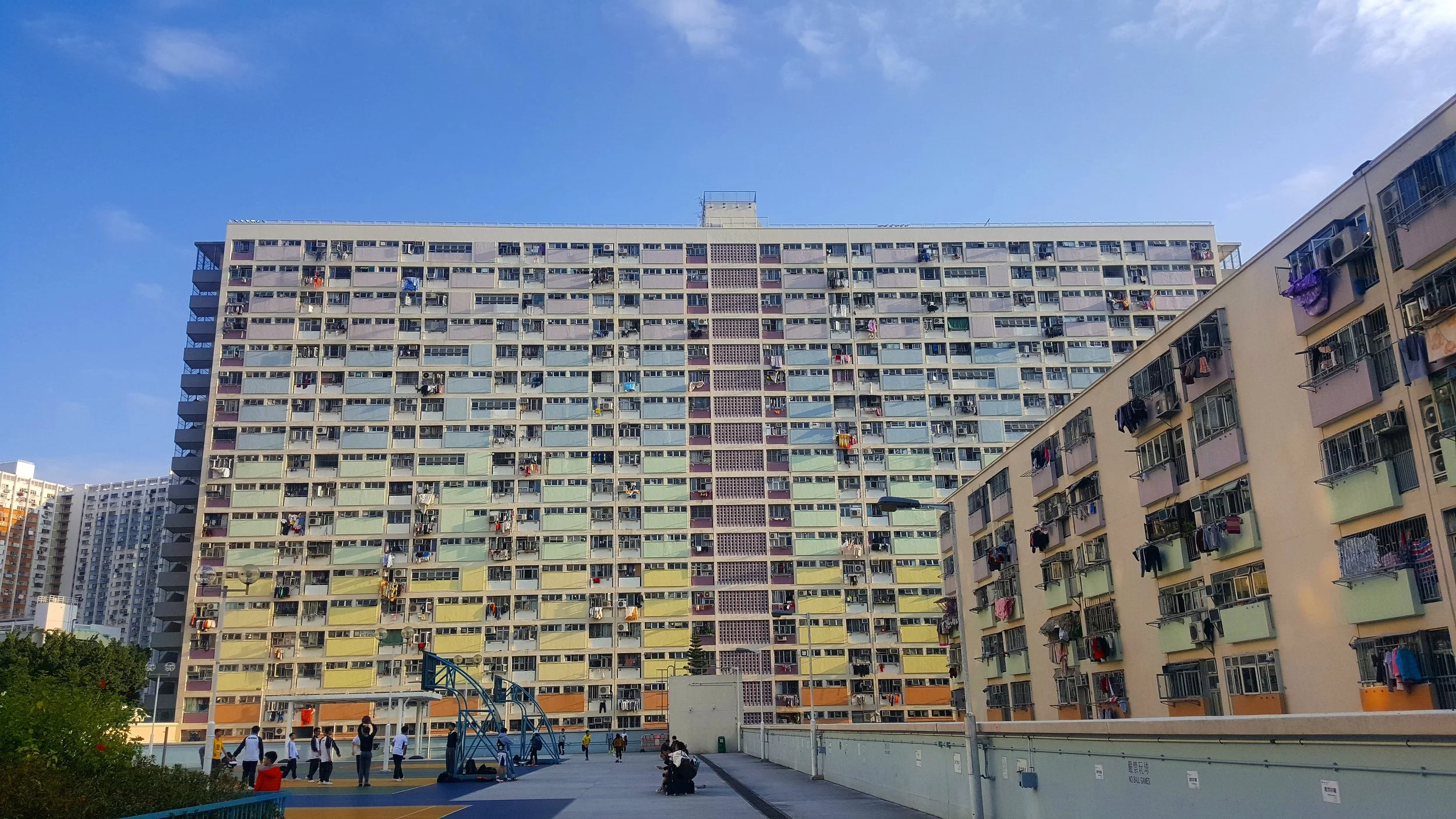 Choi Hung is best viewed from the 3rd floor of a car park located right in the centre. The car park offers stunning views, especially during sunset and also has basketball courts for school kids and b-ball enthusiasts alike.